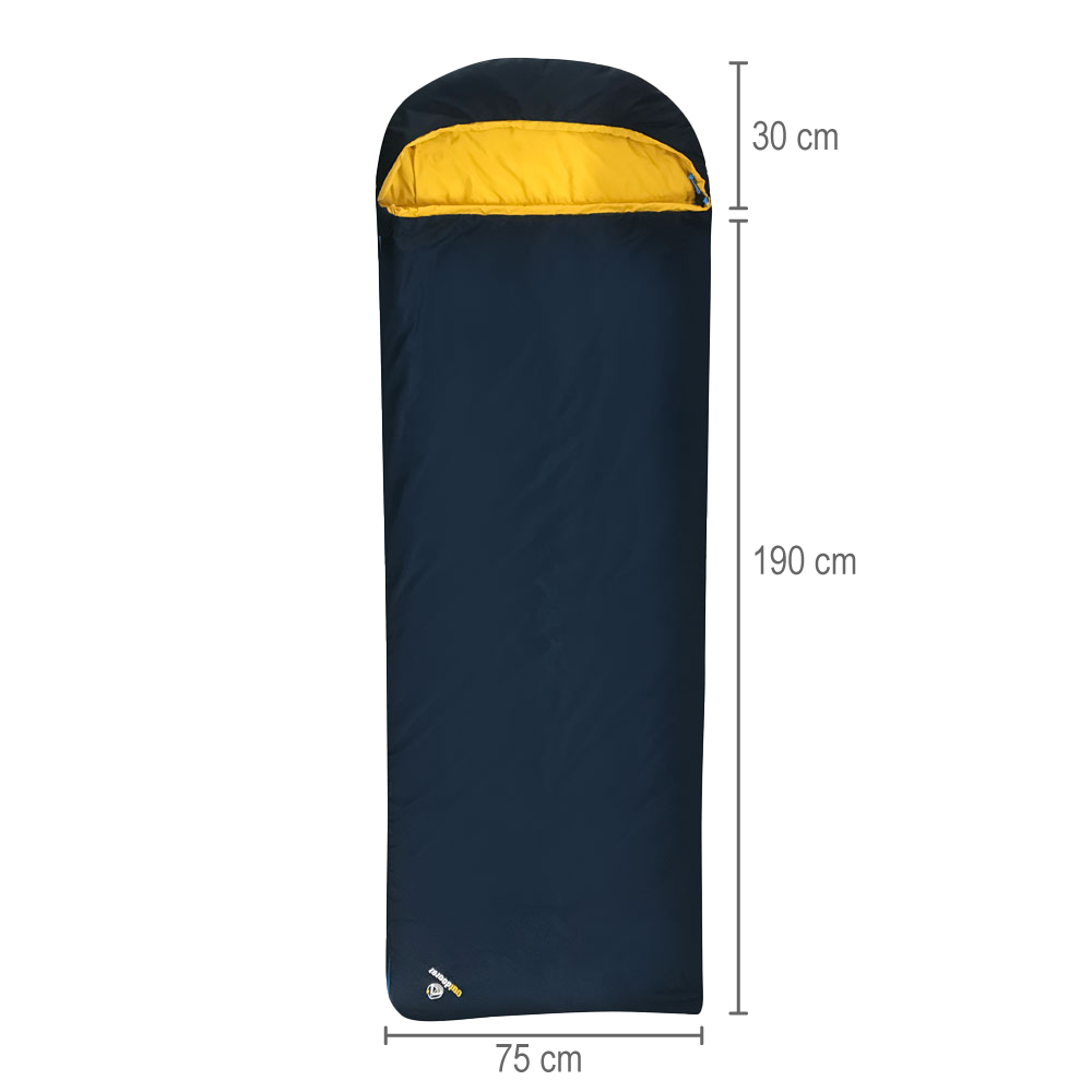- Schlafsack Maße: 190 + 30 x 75 cm