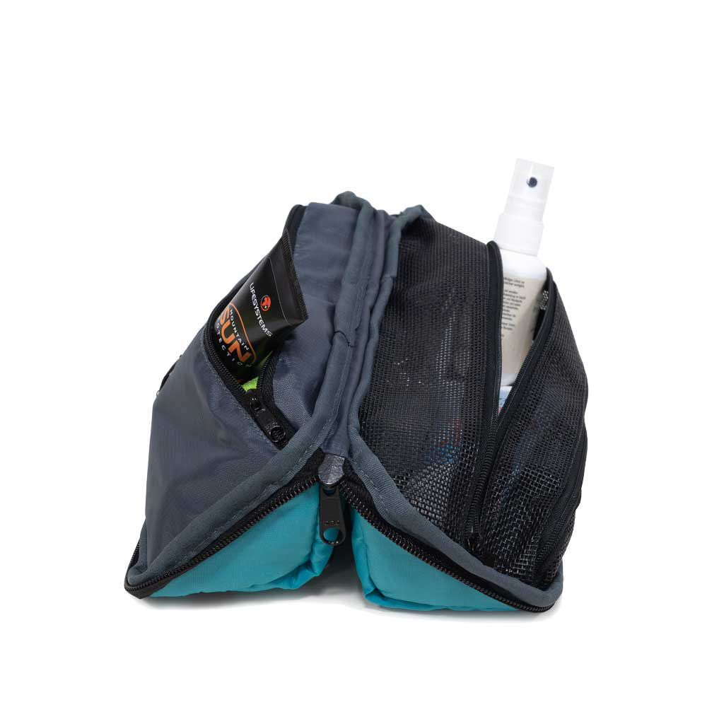 Der Wash Butler S von outdoorer wird als Waschbeutel dank seiner handlichen Abmessungen von 23 x 8 x 8 cm und einem ultraleichten Gewicht von nur 113 g dein unverzichtbarer Begleiter auf Reisen. Dabei weist das Necessaire in stylischem Türkis ein geräumiges Volumen von 1,5 l auf.