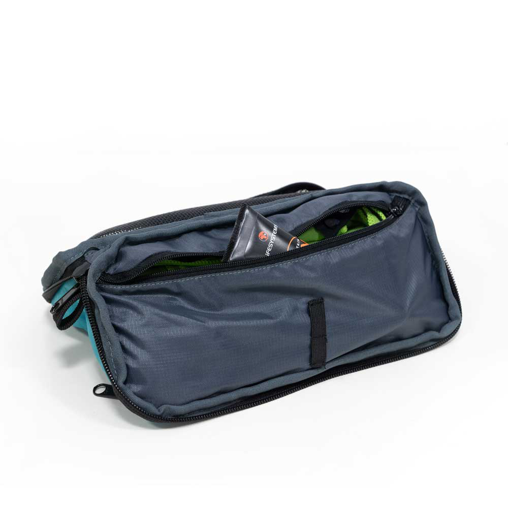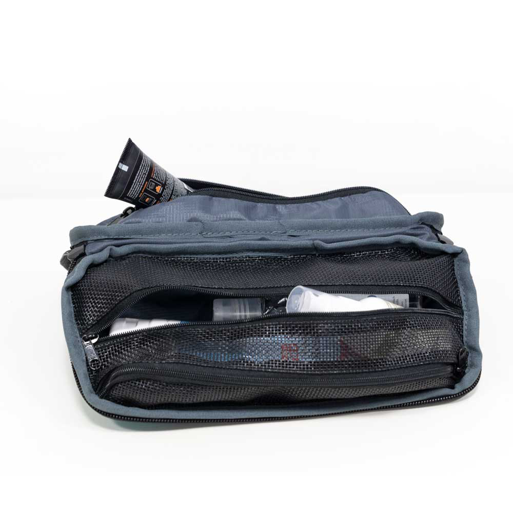 Dank dieses großzügigen Fassungsvermögens ist Platz für alle essenziellen Hygieneartikel auf Reisen. Denn in den Wash Butler S passen unter anderem Zahnbürste, Zahnpasta, Rasierapparat, Seifenblättchen, Insektenspray, Duschgel und Shampoo in Reisegröße.