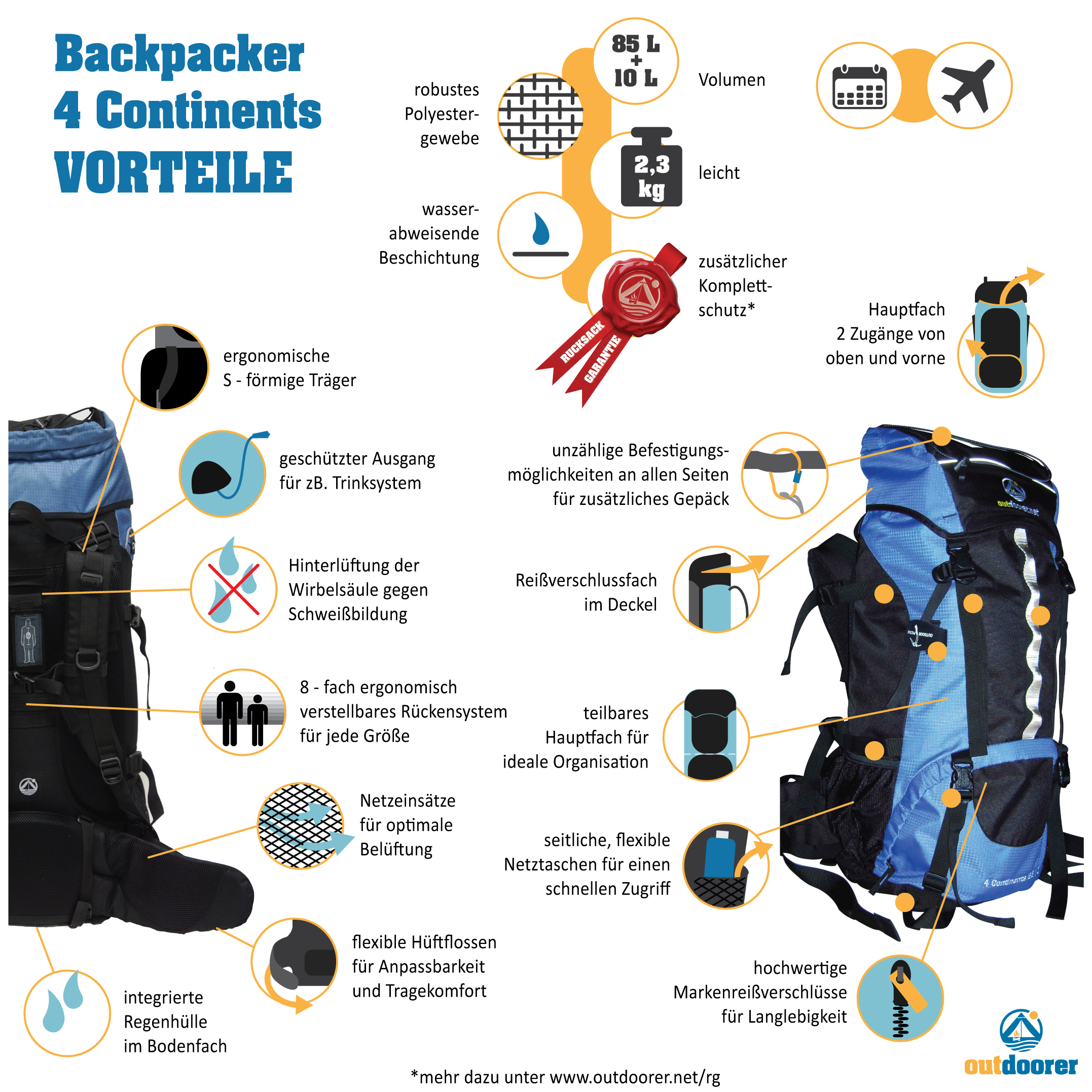 Produktinformationen "outdoorer 4 Continents 85+10 - der Backpacker Rucksack"