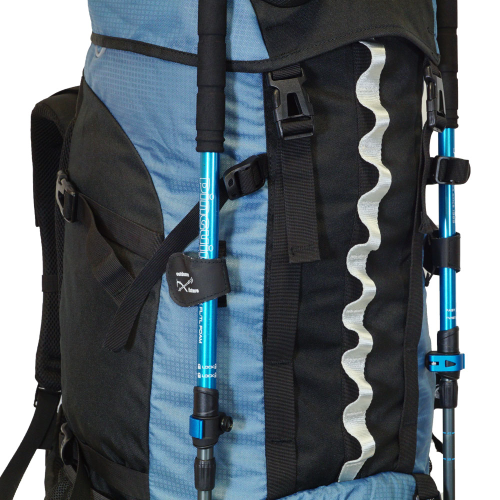 Besonders wichtig bei Backpacker Rucksäcken sind die Befestigungsmöglichkeiten außen. Damit lassen sich Zelt, Schlafsack und Isomatte sicher befestigen. Weiters verfügt der 4 Continents 85+10 über zwei Werkzeugschlaufen mit Klettverschluss.
