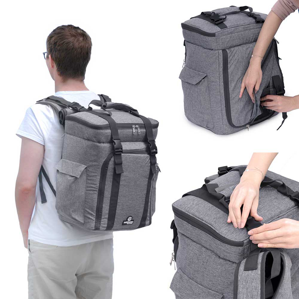 - Kühlrucksack und Kühltasche in einem: durch verstaubare Schulterriemen