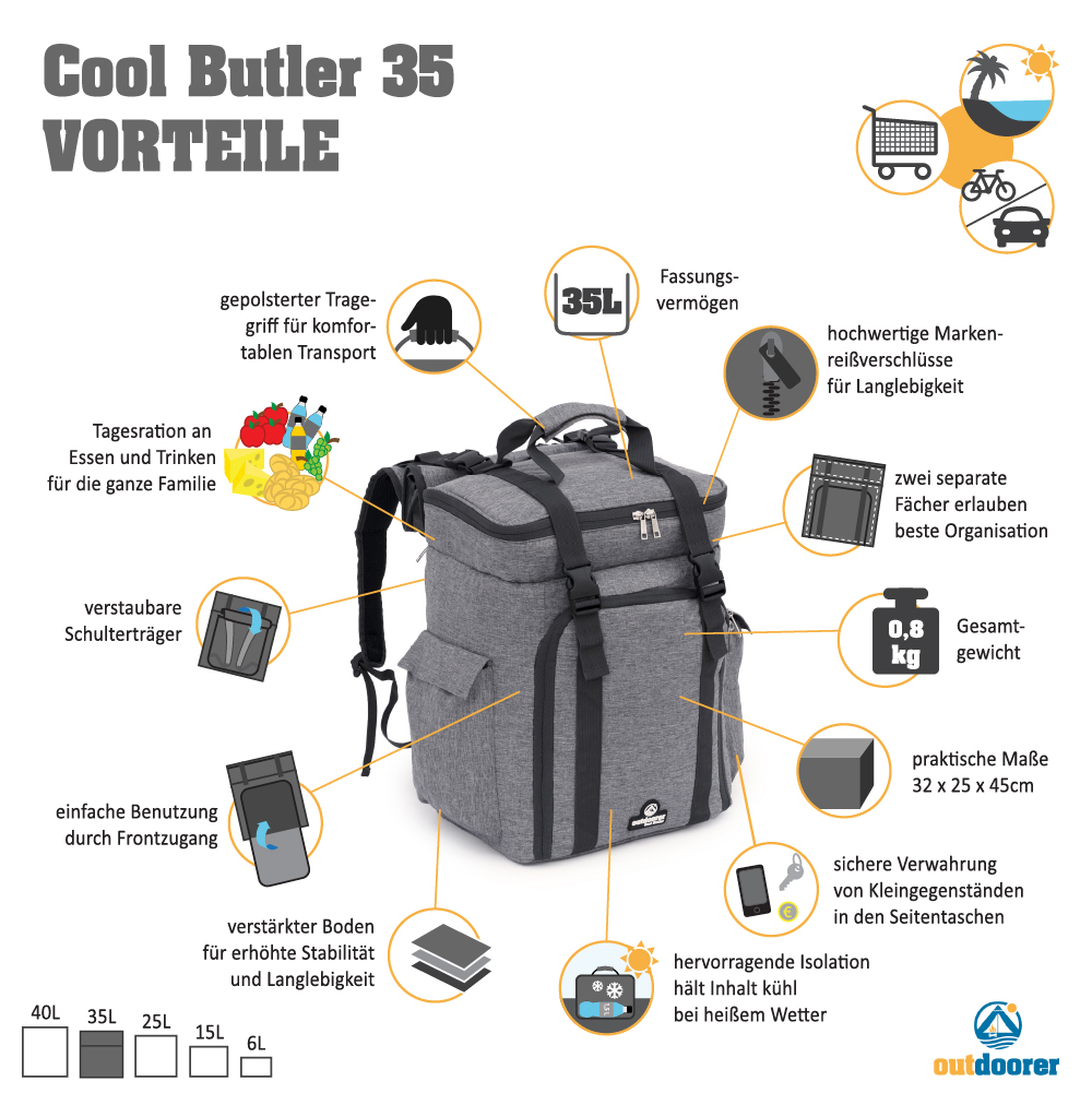 Produktinformationen "outdoorer Cool Butler 35 in Grau - Kühlrucksack 35 Liter"