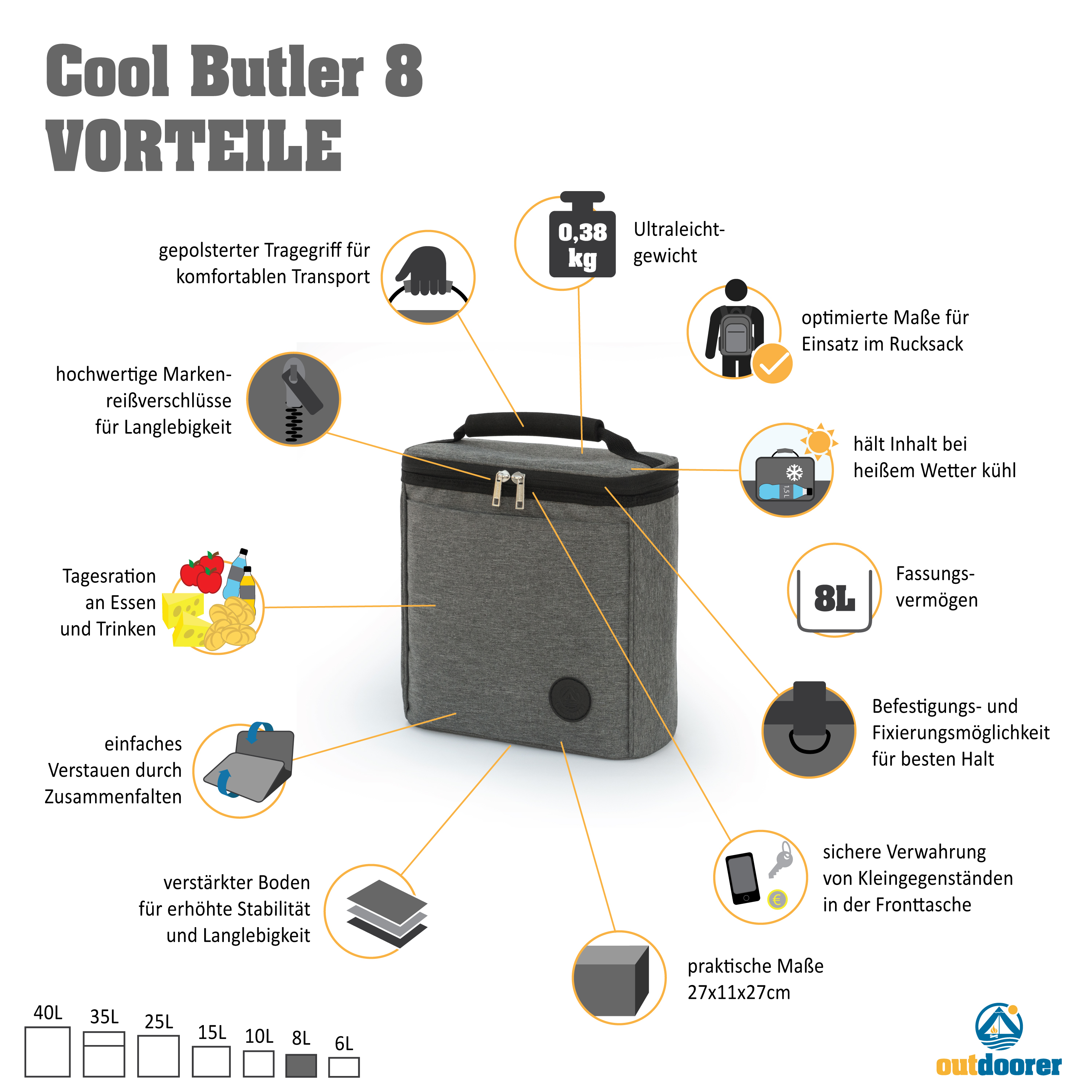 Produktinformationen "outdoorer Cool Butler 8 - stylische 8 Liter Kühltasche in Grau"