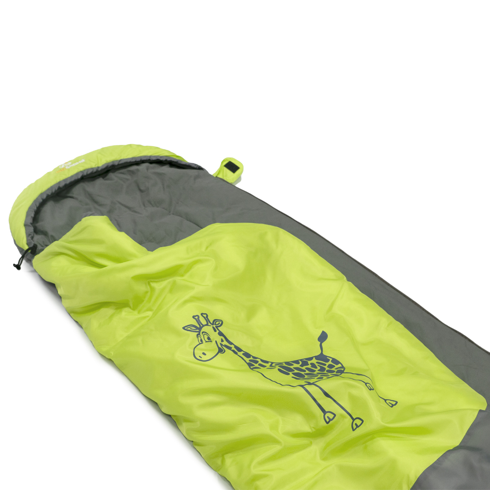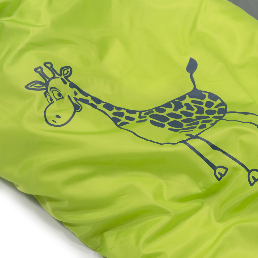 Das Design des Dream Express wurde kindgerecht gestaltet. Die Farbe des Schlafsacks ist in einem fröhlichen, leuchtenden Apfelgrün gehalten. Er ist damit sowohl für Mädchen als auch für Jungs geeignet. Als Highlight hat er auf der Vorderseite einen Giraffenaufdruck.