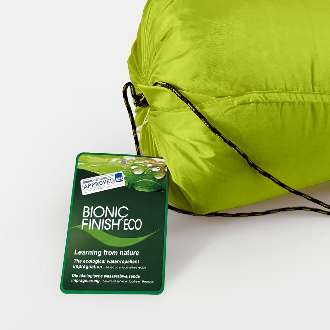 Dank der Hohlfaserfüllung ist der Schlafsack bis ca. 5 Grad einsetzbar. Etwas kühlere Nächte sind für den Kinderschlafsack Dream Express kein Problem. Er eignet sich daher nicht nur für den Einsatz in den warmen Sommermonaten, sondern hält dein Kind auch noch in der Übergangszeit im Frühling und Herbst warm. Dank BIONIC FINISH® ECO ist der Schlafsack wasserabweisend.