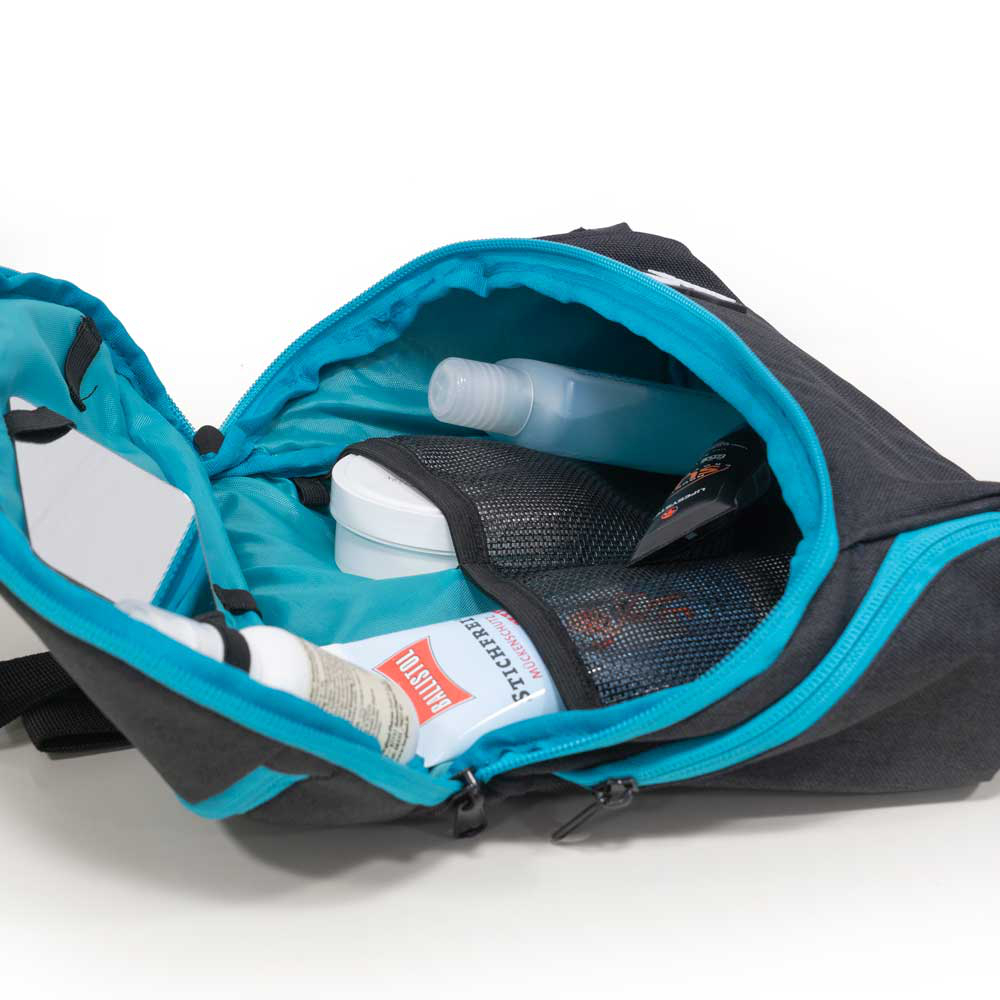 Egal ob Outdoor-Dusche beim Campen, Waschbecken in Ho(s)tels oder Duschstange im Hotel, auch wenn du die einzige Person bist, die das Bad benutzt, besteht das Risiko, dass dein Kulturbeutel am Boden oder neben dem Wasserhahn abgestellt nass wird. Aus diesem Grund lässt sich der Wash Butler M mit Lasche und Schnalle praktisch an einem Haken und jeder beliebigen Stange aufhängen. Mit diesem Kulturbeutel ist Backpacking und Reisen selbst in kleinen Bädern ohne geeignete Abstellflächen keine Herausforderung mehr!
