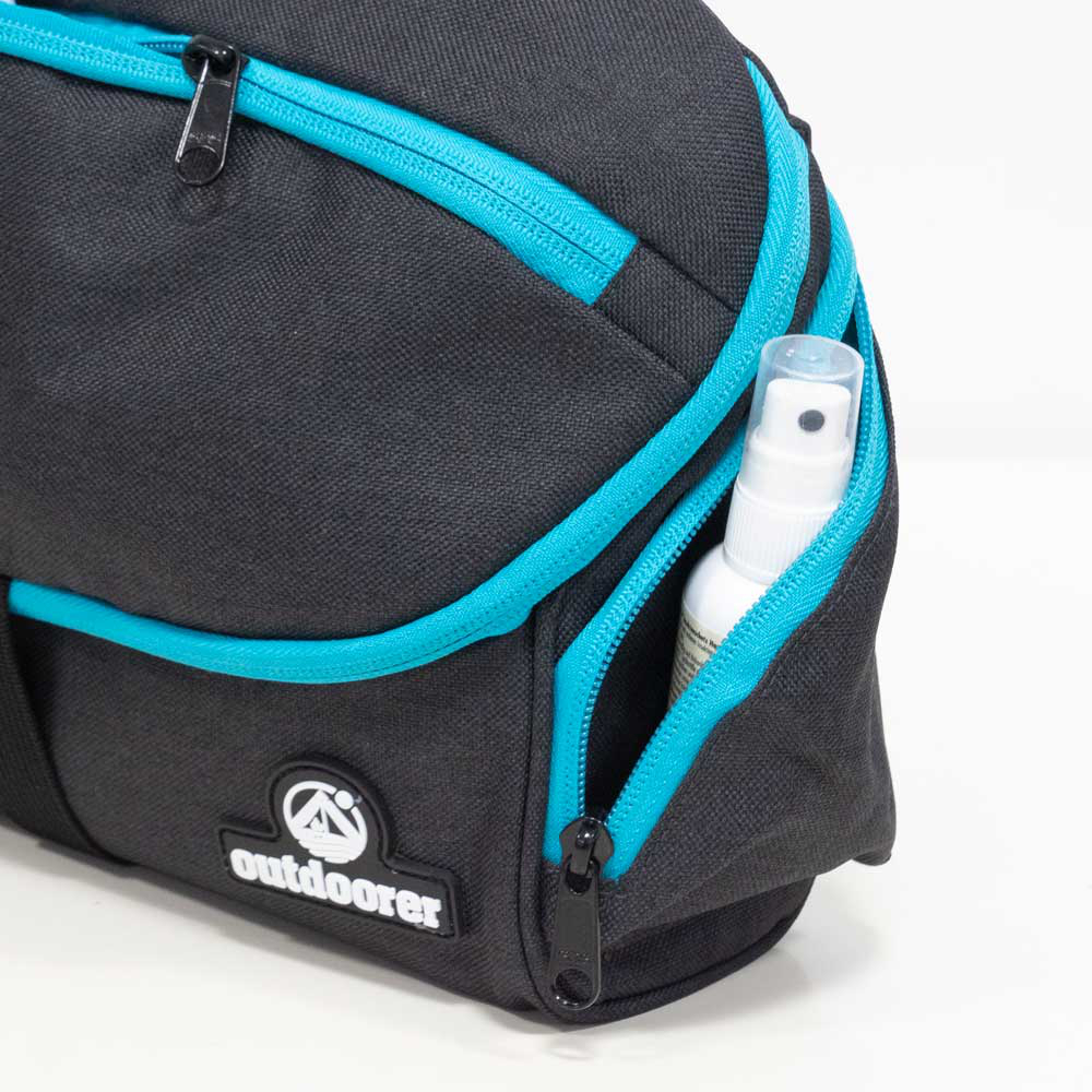 Viel Stauraum und praktische Organisationsfächer machen den Wash Butler L zu deinem Lieblingsbegleiter auf Reisen, bei Wochenendtrips oder ins Fitnessstudio. Durch die Rolltop Öffnung kannst du die Größe der Kulturtasche deinem Inhalt anpassen. Du bist nur eine Nacht unterwegs oder bleibst gleich eine Woche – der Wash Butler L lässt sich deinem Platzbedarf anpassen.Außerdem bietet die Kulturtasche eine kleine Schlaufe, damit du sie nicht in öffentlichen Badezimmern, in Hostels oder im Fitnessstudio am Boden stellen musst. Zusätzlich hast du so leicht Zugriff auf alle Kosmetikartikel, die du gerade benötigst. Bestelle dir jetzt die Kulturtasche zum Aufhängen von outdoorer im außergewöhnlichen Rolltop Design! Technische Facts zur Wash Butler L Kulturtasche Große Kulturtasche mit Rolltop Öffnung Rolltop Öffnung mit Schnallen: je nach Füllung ist die Größe verstellbar Kulturtasche größenverstellbar: Volumen 7 – 10 Liter Vorderes Fach mit Mesh-Fächern und elastischen Befestigungslaschen für Schminkstifte, Lippenbalsam oder eine Zahnbürste Vertikale Fronttasche Alle Fächer sind mit hochwertigen Reißverschlüssen verschließbar Maße: 26 x 26 x 10 cm Abgetrenntes Fach unten Kulturtasche: grau und türkis outdoorer Logo Kulturtasche mit außergewöhnlichen Organisationsfächern Auch wenn auf Reisen oftmals Chaos herrscht, auf eines kannst du dich verlassen: deine Hygieneartikel, Schminksachen, Rasierer etc. sind immer an ihrem Platz. Die Kulturtasche L verfügt über ein geräumiges Bodenfach für sperrige oder nasse Gegenstände. Auf der Vorderseite des Kulturbeutels befinden sich zwei Reißverschlusstaschen. Hinter der großen Tasche verbirgt sich ein Organizer aus Mesh mit Gummischlaufen. So liegt alles an seinem Platz. Die kleine Tasche ist eine vertikale Fronttasche für Kleinigkeiten, die du schnell zur Hand haben möchtest. Rolltop Kulturtasche zum Einrollen Das Hauptfach lässt sich durch einen Reißverschluss verschließen. Danach rollst du die Öffnung soweit ein, bis es beim Inhalt deiner Kulturtasche ansteht. Durch Rollen kannst du die Größe deiner Kulturtasche deinen Hygieneartikeln anpassen. Für jede Reise oder jeden Ausflug die richtige Größe vom Kulturbeutel haben? Mit dem Wash Butler L bist du bestens ausgerüstet für jeden Anlass! Bestelle dir jetzt deinen Wash Butler L direkt bei uns im Outdoorshop123!