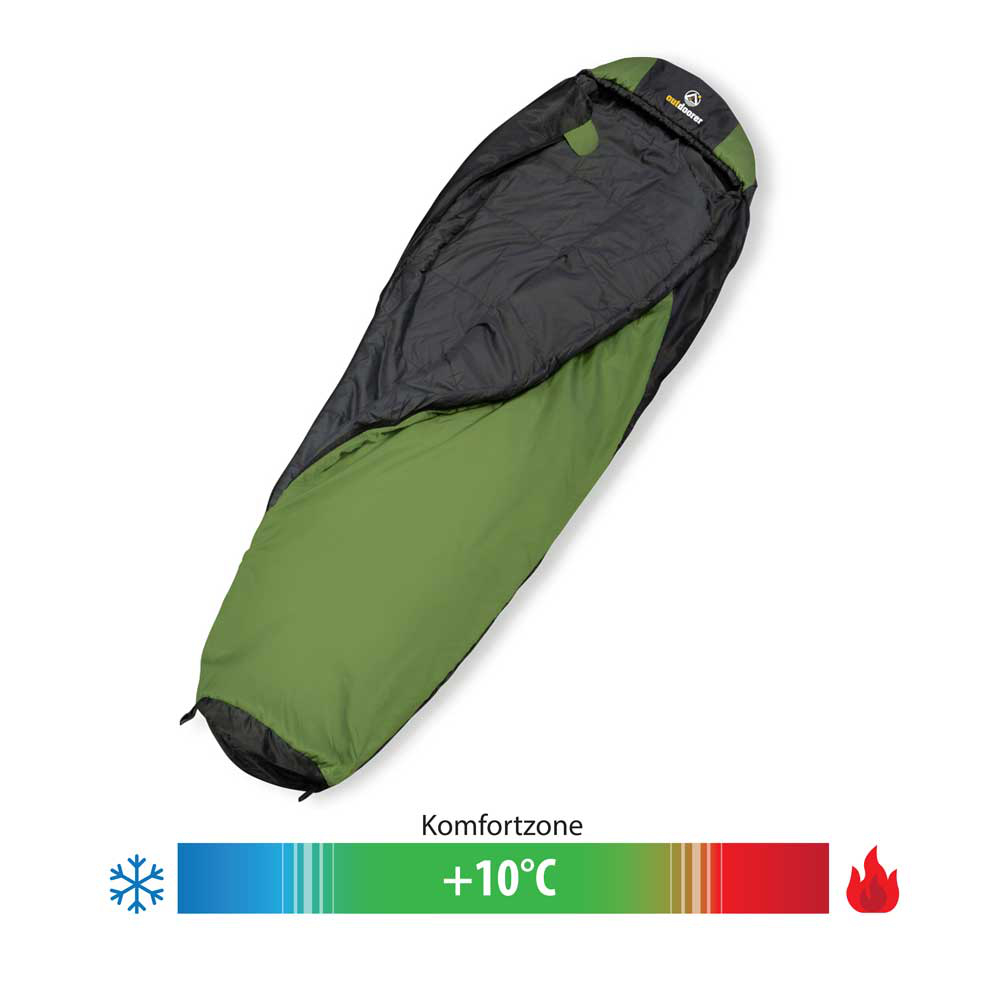 Für den Trek Night werden nur hochwertigste Materialien verwendet, damit du auch in kühleren Nächten nicht frieren musst. Deshalb wird für die Füllung des Schlafsacks eine daunenähnliche Kunstfaser verwendet. Die Vorteile gegenüber Naturfasern bestehen im geringeren Gewicht und der besseren Wärmeisolierung. Um ein Auskühlen der Füße zu vermeiden ist der untere Bereich des Schlafsacks dicker gepolstert. Der Komfortbereich des Trek Night liegt bei +10 Grad Celsius. Das Temperaturempfinden ist bei Damen und Herren unterschiedlich und daher sollten Damen den Komfortbereicht etwas höher ansetzen.