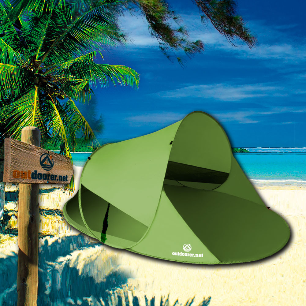 outdoorer Pop Up Strandmuschel Zack II - grün, selbstaufbauend, mit Moskitonetz