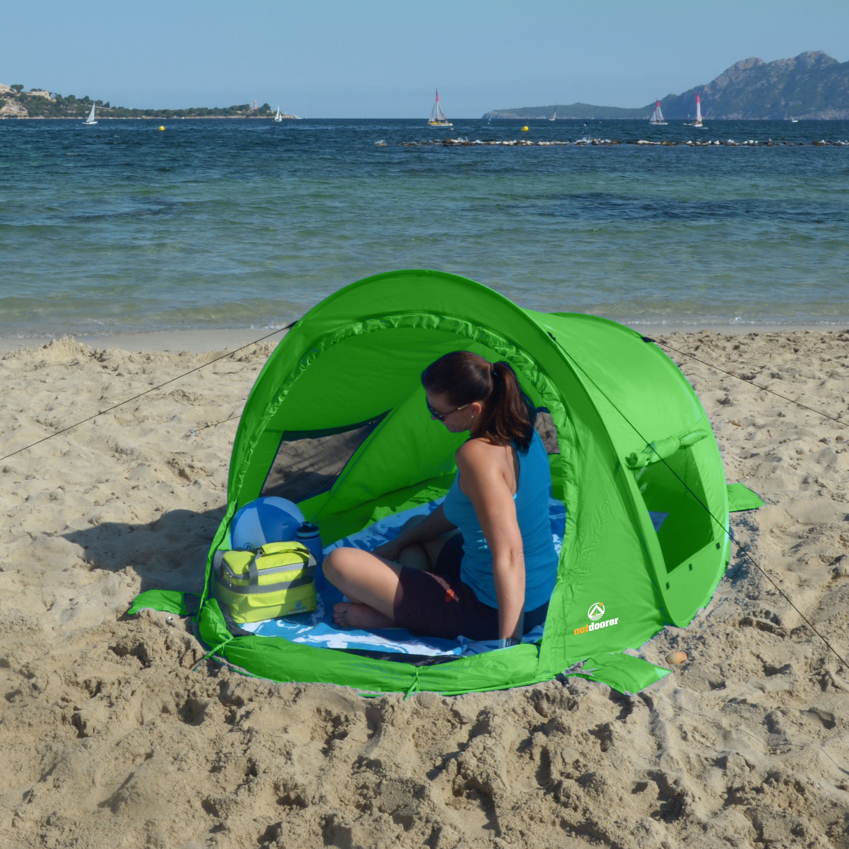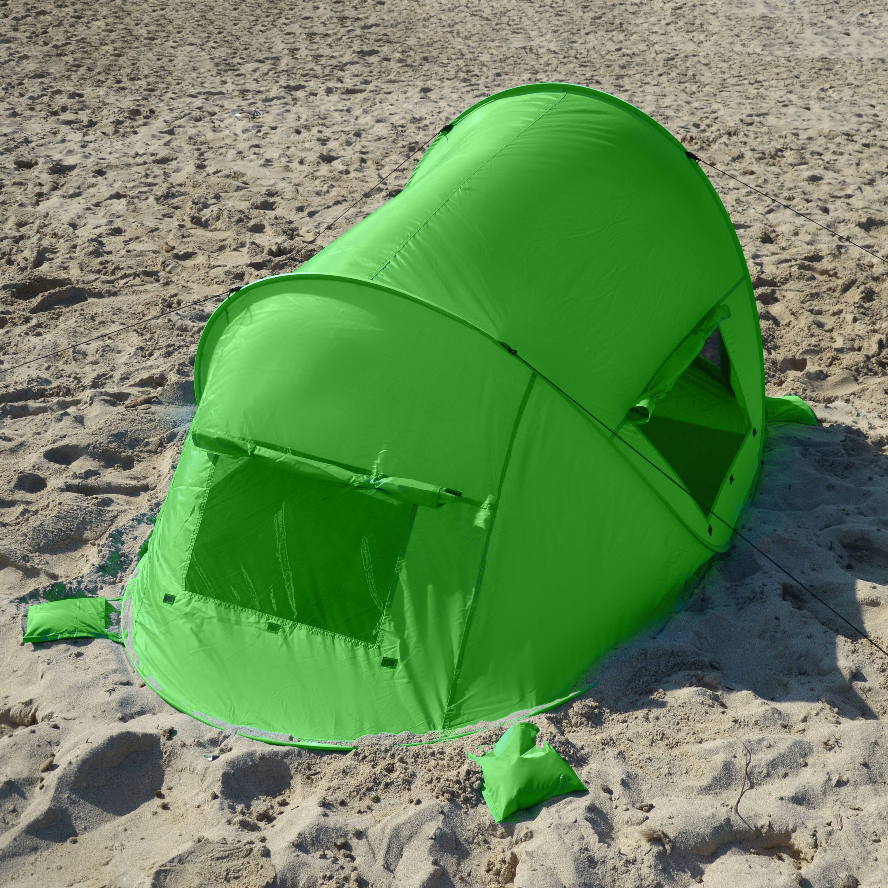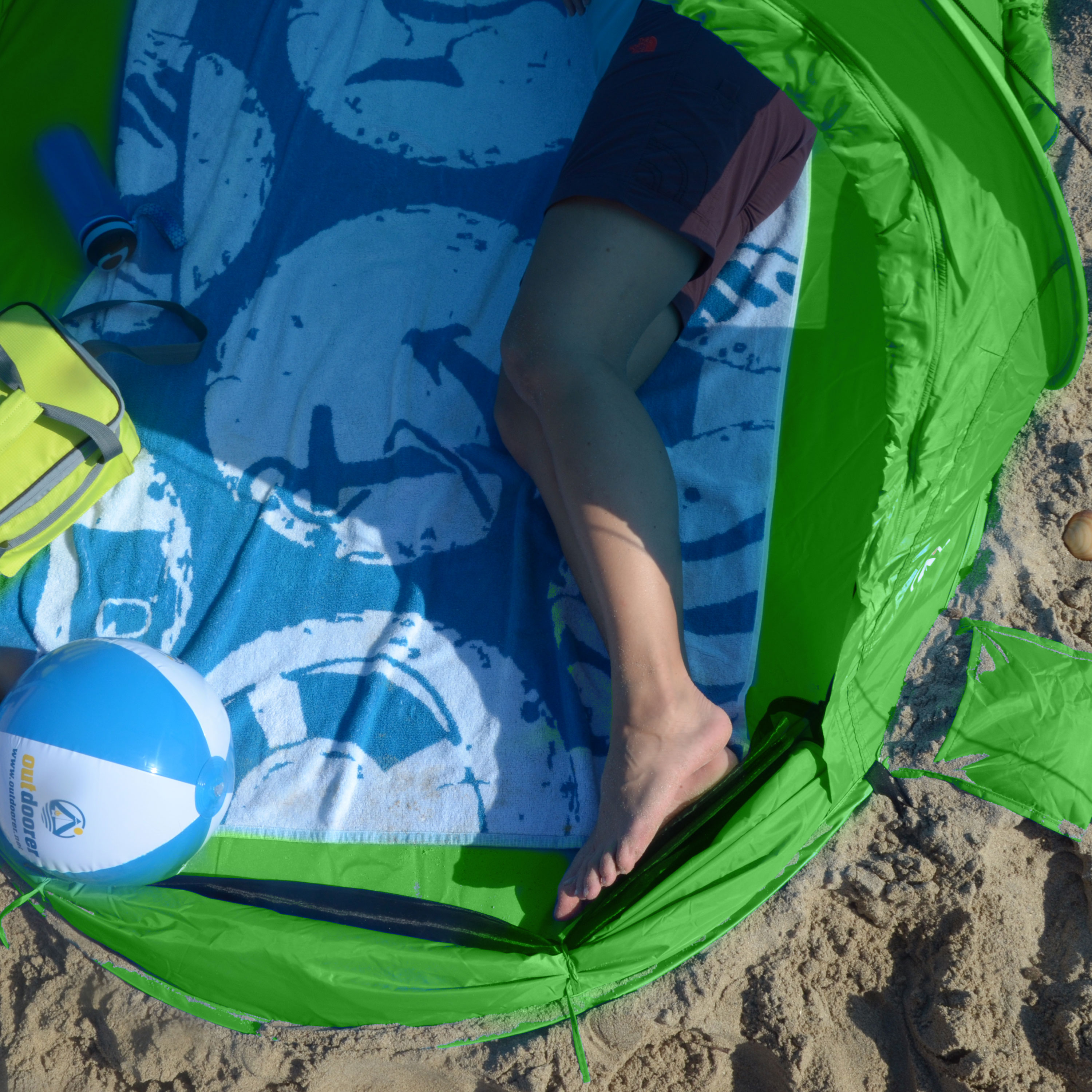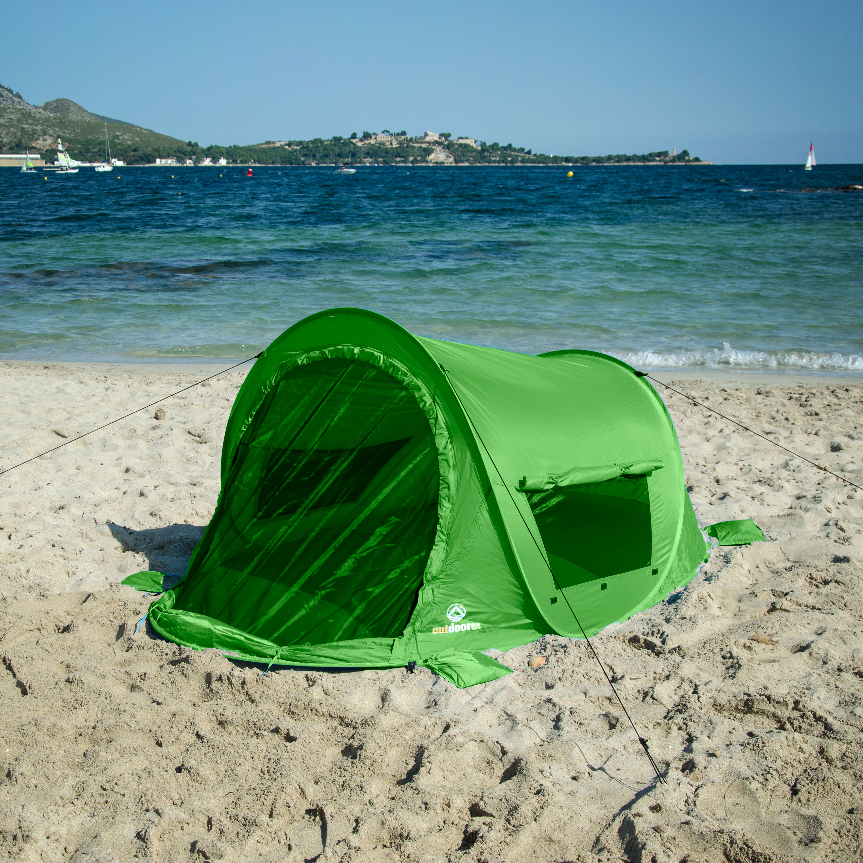 outdoorer Pop up Strandmuschel Zack Premium Family in Grün – mit verschließbarem Eingang
